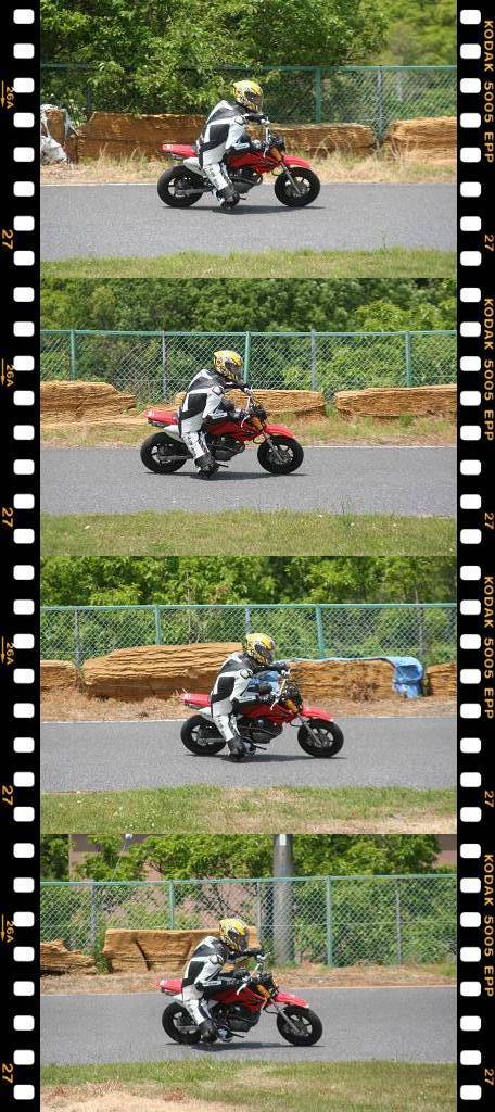 MotoGPでは頭もイン側に落とすが、それはまだ無理。