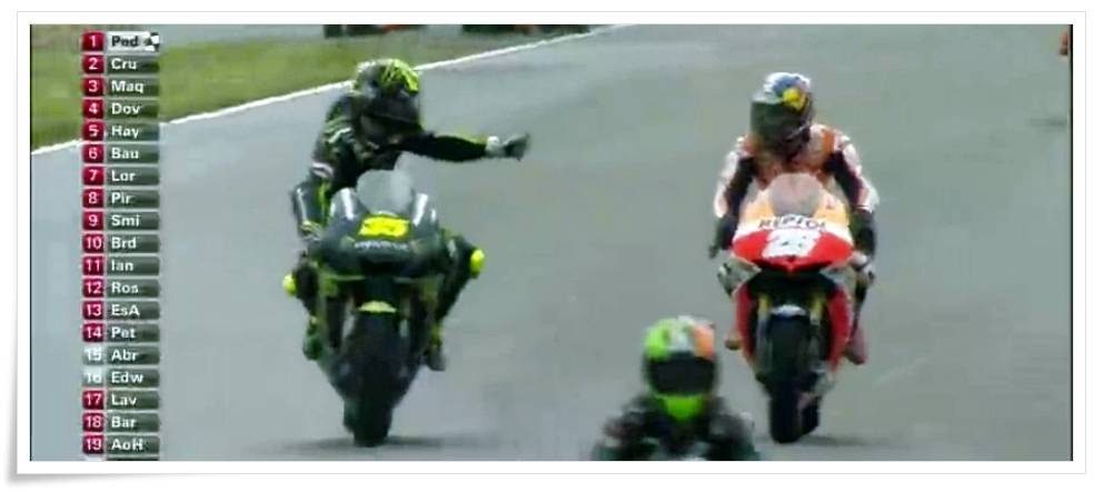 かなりの転倒者が出る中、駆け抜けたのはゼッケン26番ペドロサ!