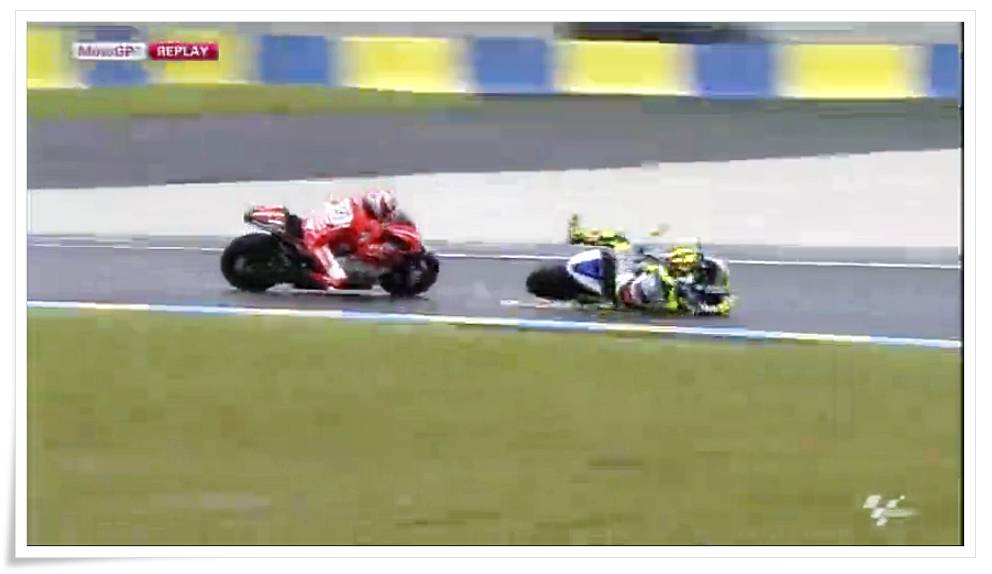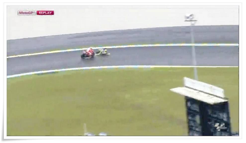 ロッシはこの後車体を起こし、なんとかレースに復帰。