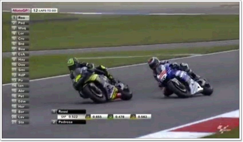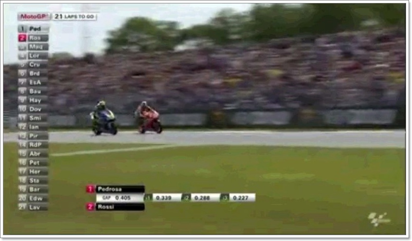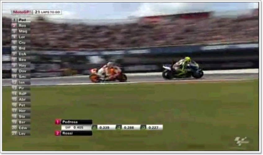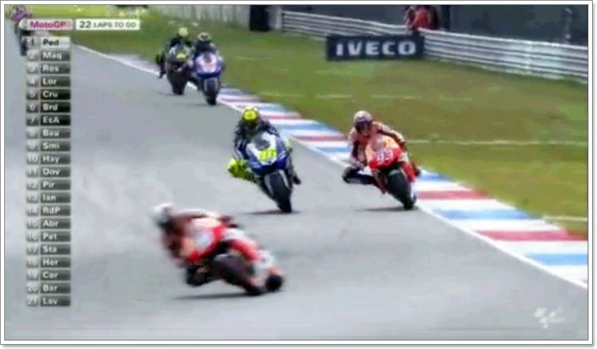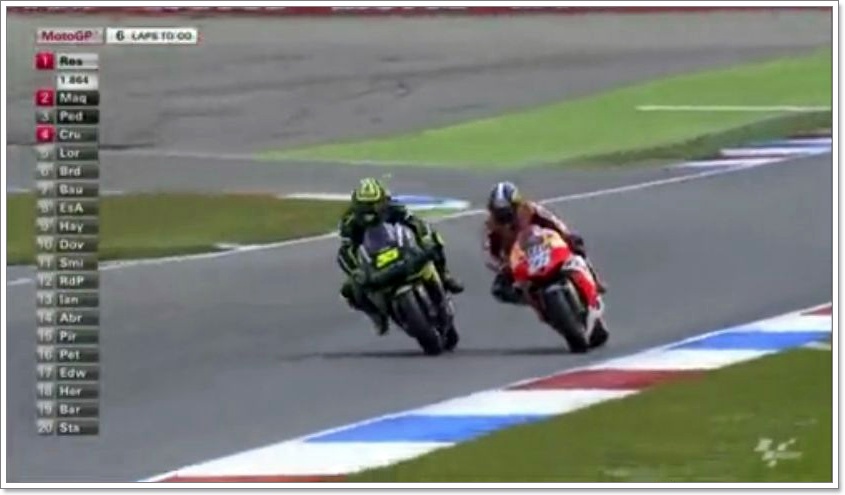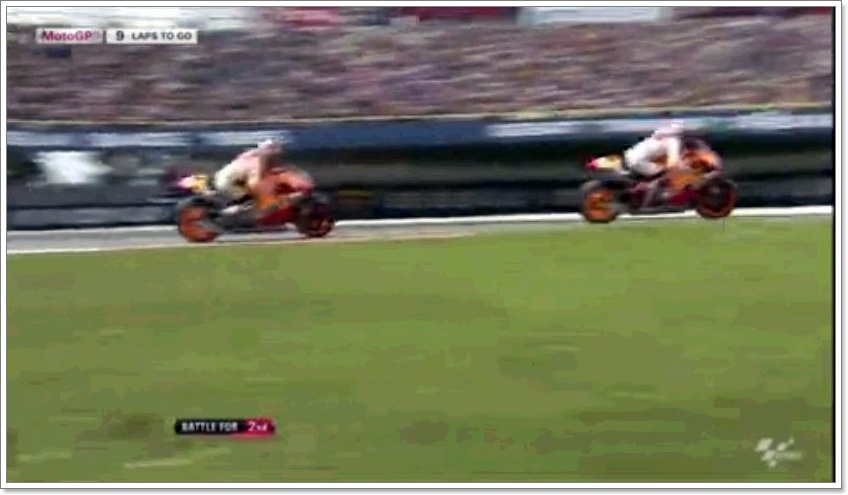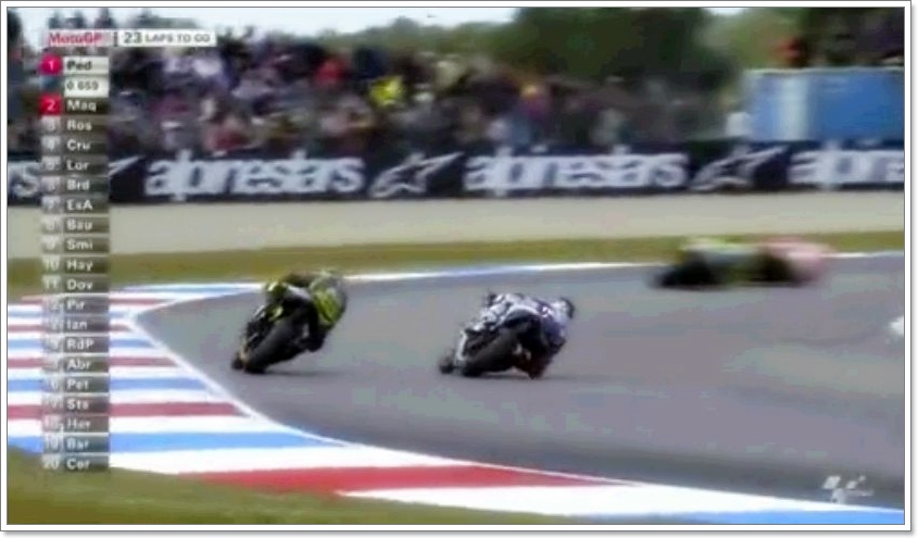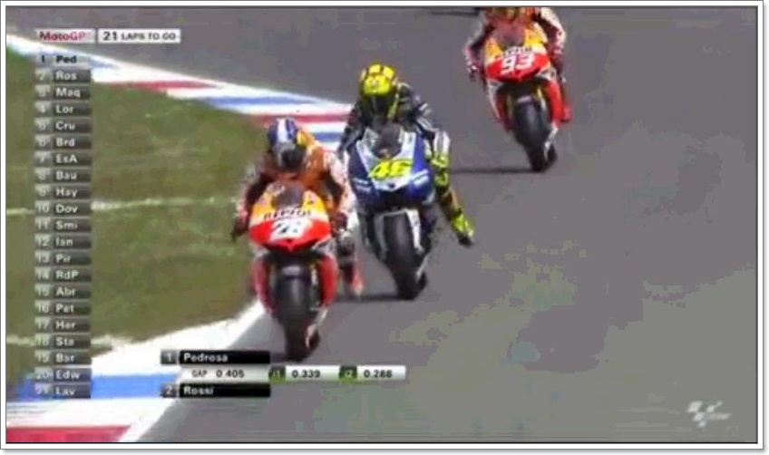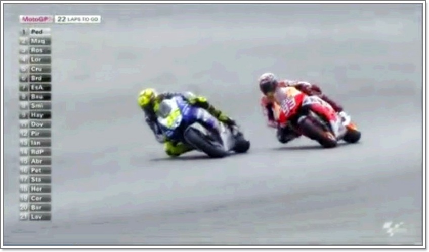 サクッとブラドルをパッシングしてペドロサ、マルケスに次ぐ3位に上がっていきます。