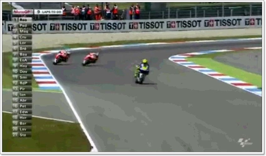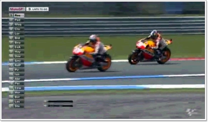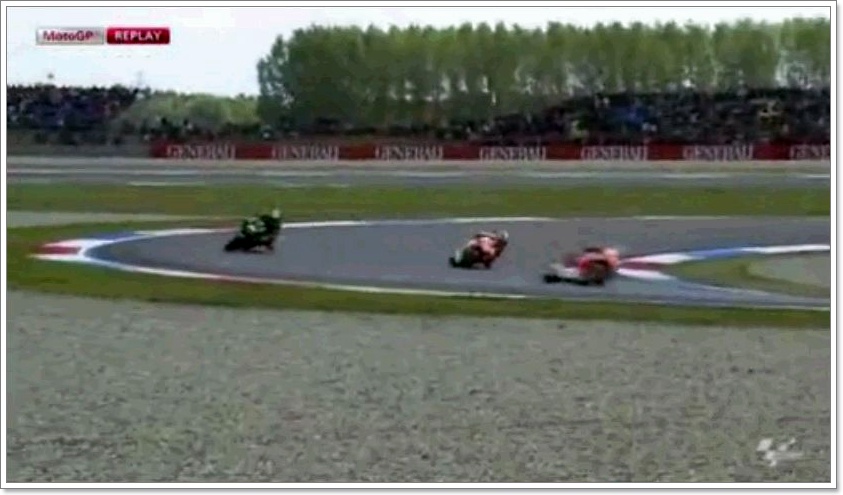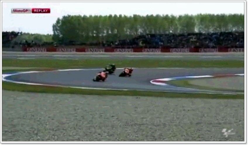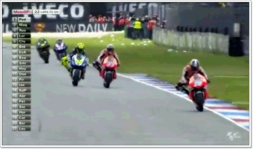 またもブレーキで追い付いてINからペドロサを抜き去って3位へ!