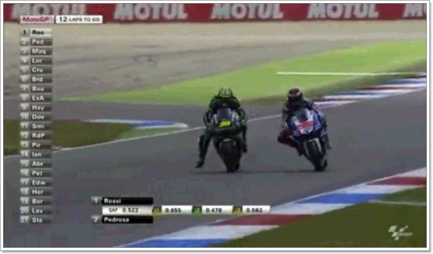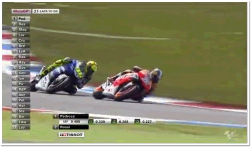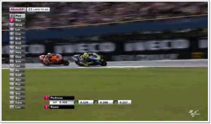 マルケスを抜いた勢いをそのままにペドロサの背後においついて