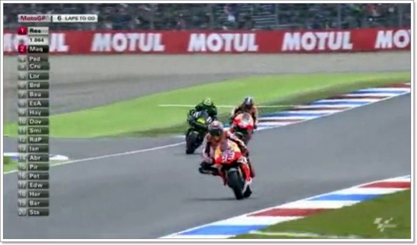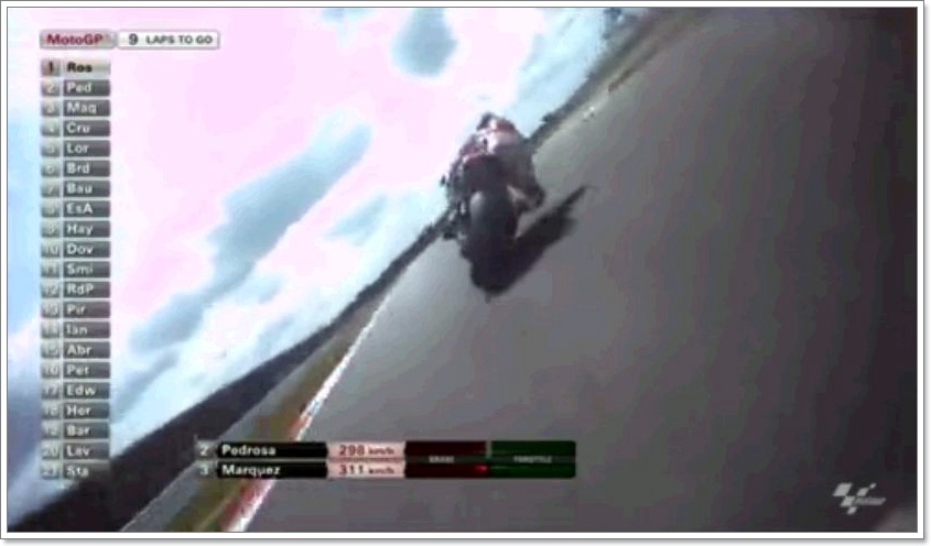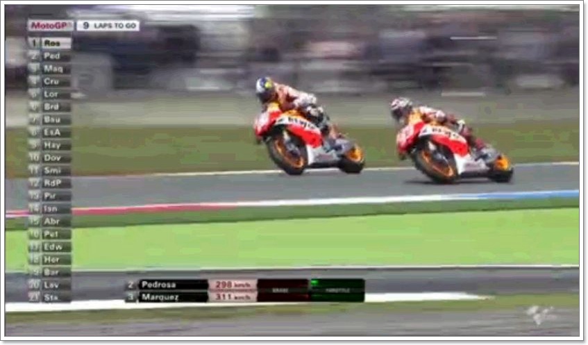 ブレーキで一気に詰めて華麗にマルケスをパッシング!