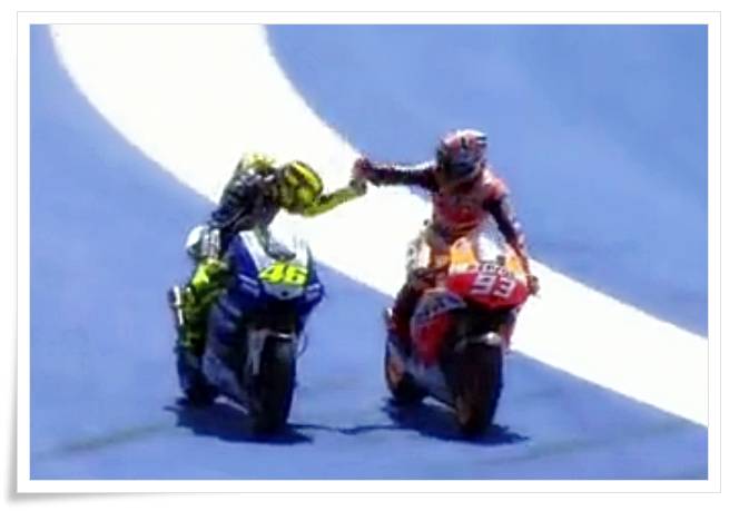 特に印象的なのはロッシがマルケスを祝福しているシーン。