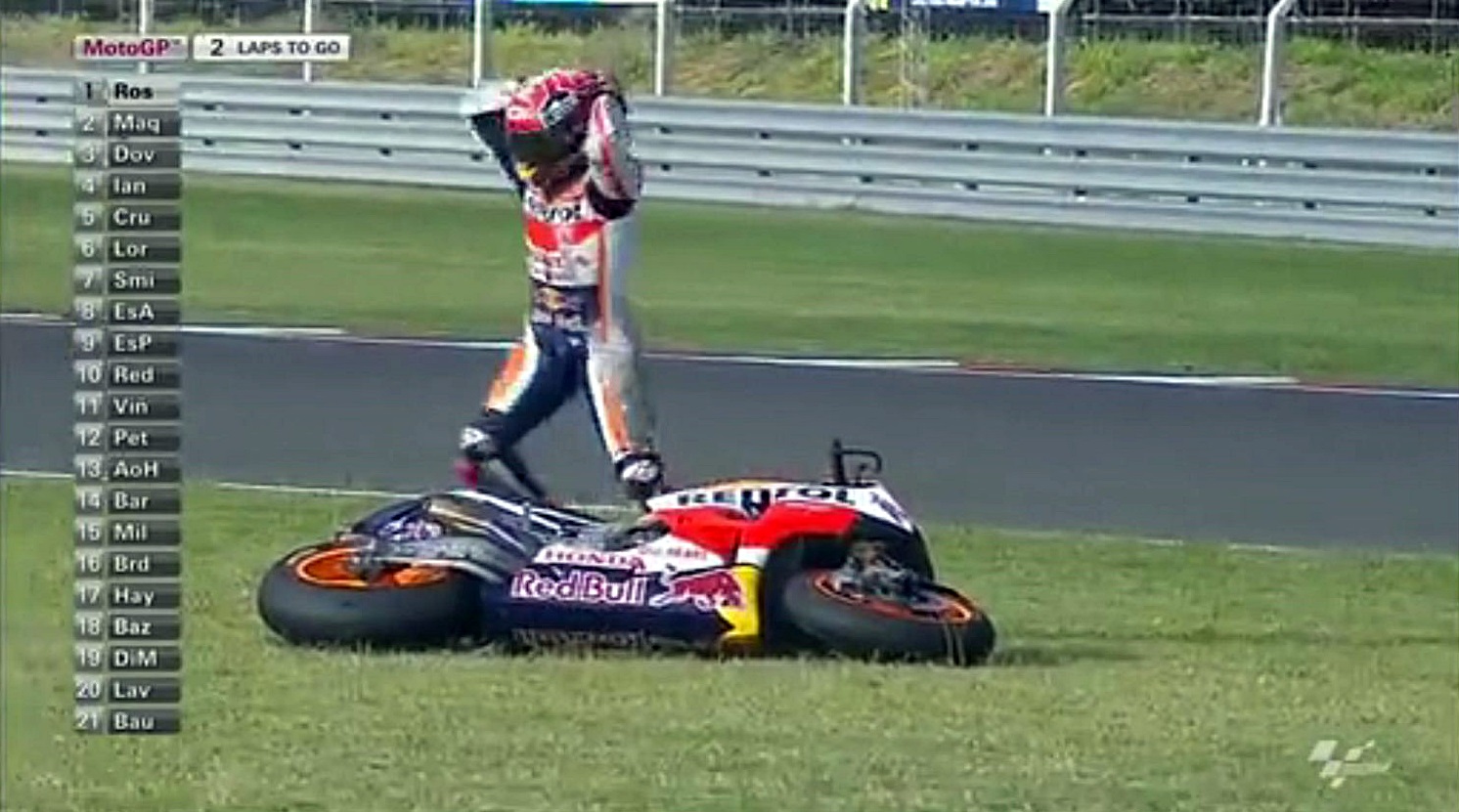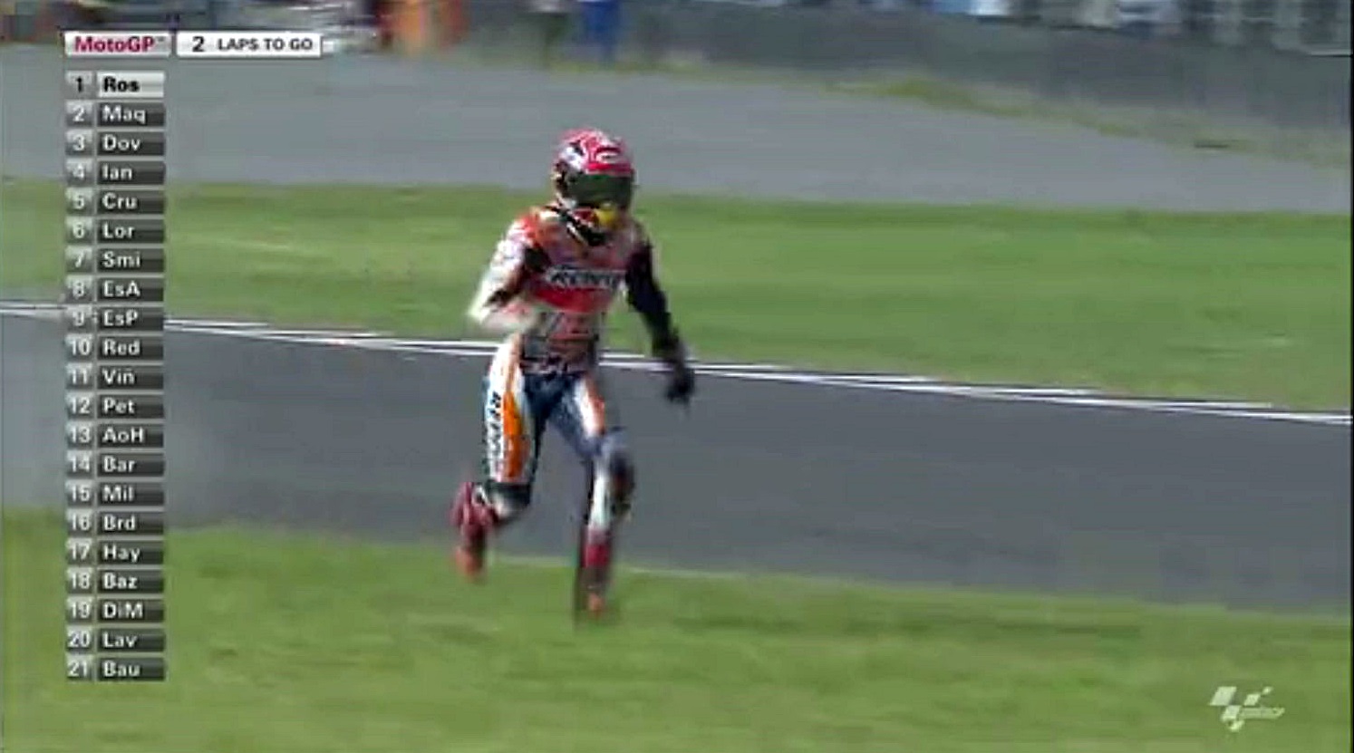 ん~最後までロッシとのバトルが見たかったけど、タイヤの消耗が激しくて抜かれたら終わりってのがあったんだろうね。だから無理せざるを得なかったのかな。