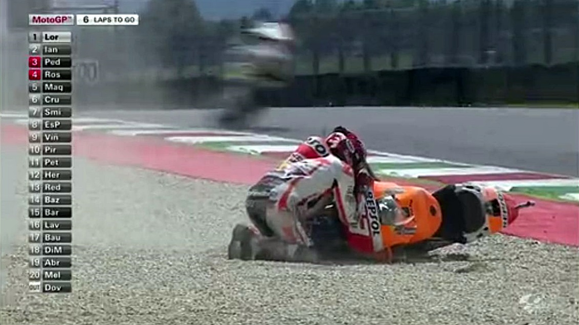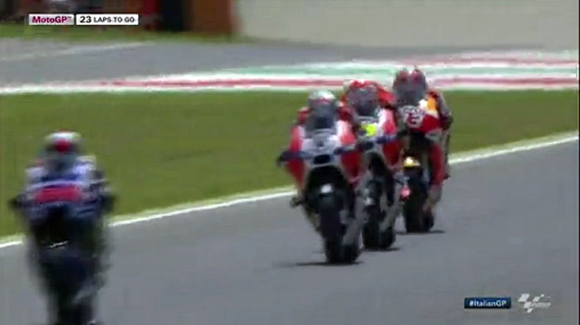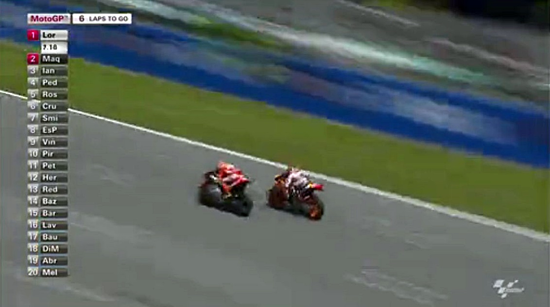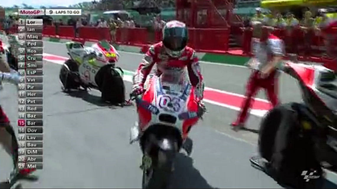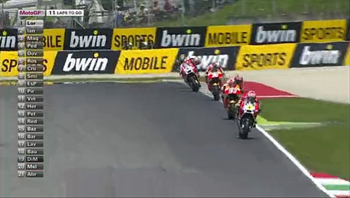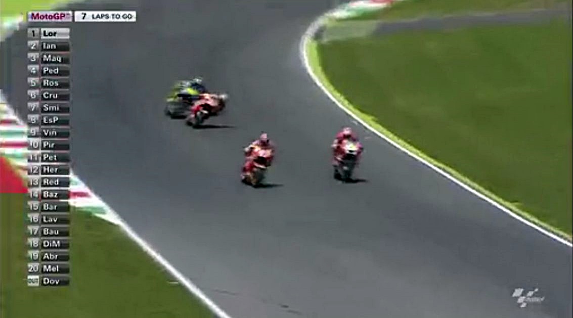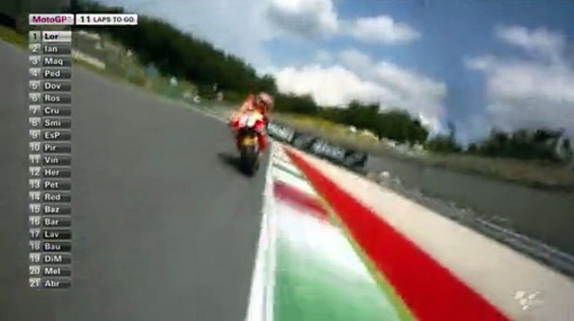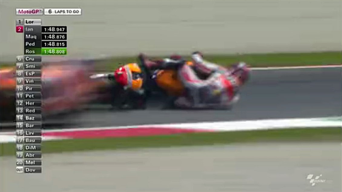 そんなロレンソの一人旅が始まる中、中盤まではドカとホンダの2位~4位争いが続きます。序盤はアグレッシブだったマルちゃんも、時々突っ込んでオーバーランしながらも悔いてますが