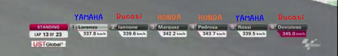 決してトップスピードは早くないんだよね、ってかむしろ遅いんだよなぁ。この表示ではそんな極端に遅く見えないかもだけど、ロレンソの最高速は12位らしいんですよねぇ、本人も