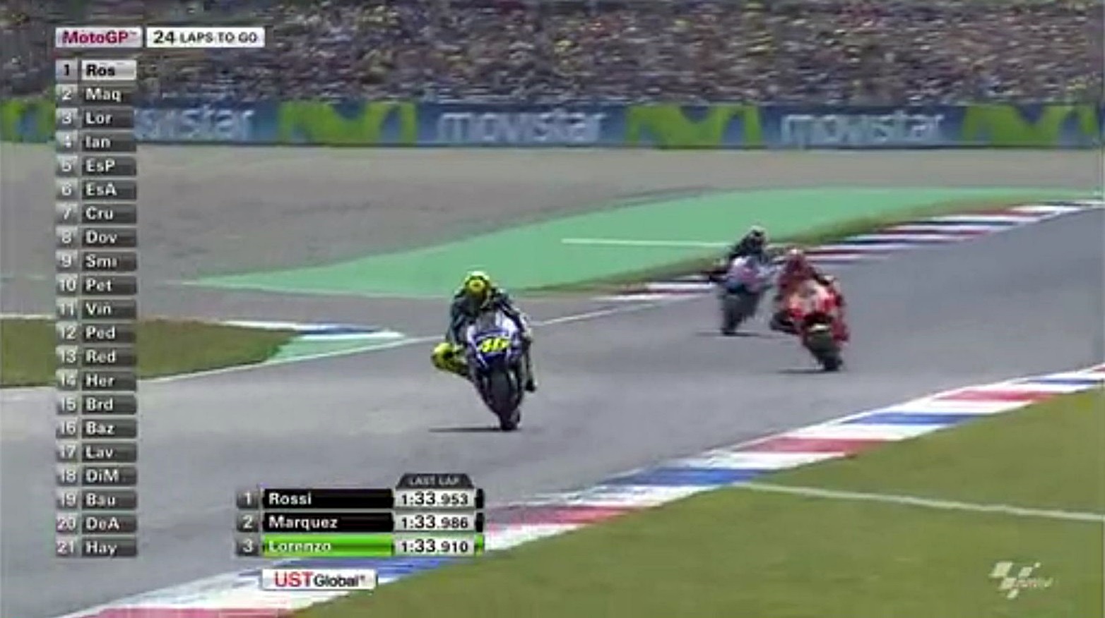 ほんとバトルになるとロッシは生き生きしてるなぁ~。ぴったり後ろについてプレッシャーをかけつつ、抜きどころを分析してるのでしょうか。さすがはDoctor!