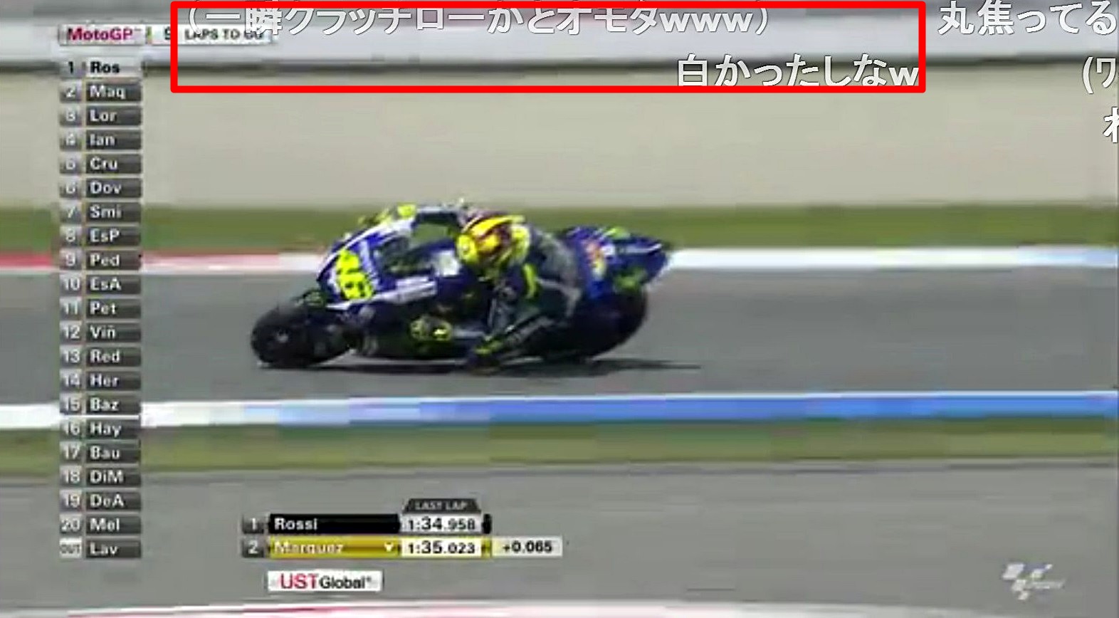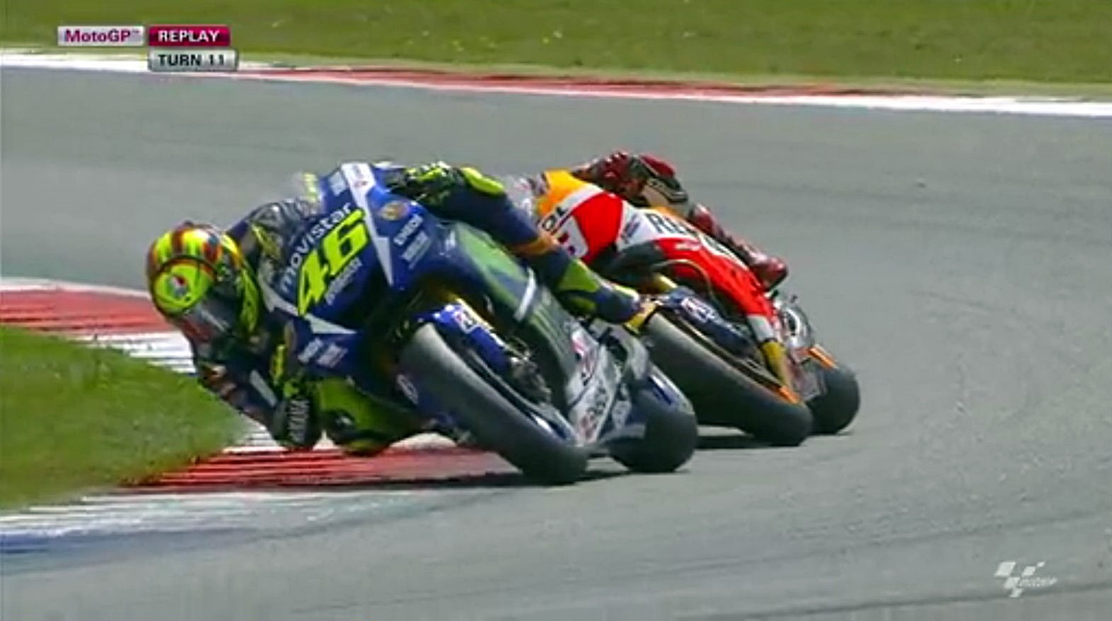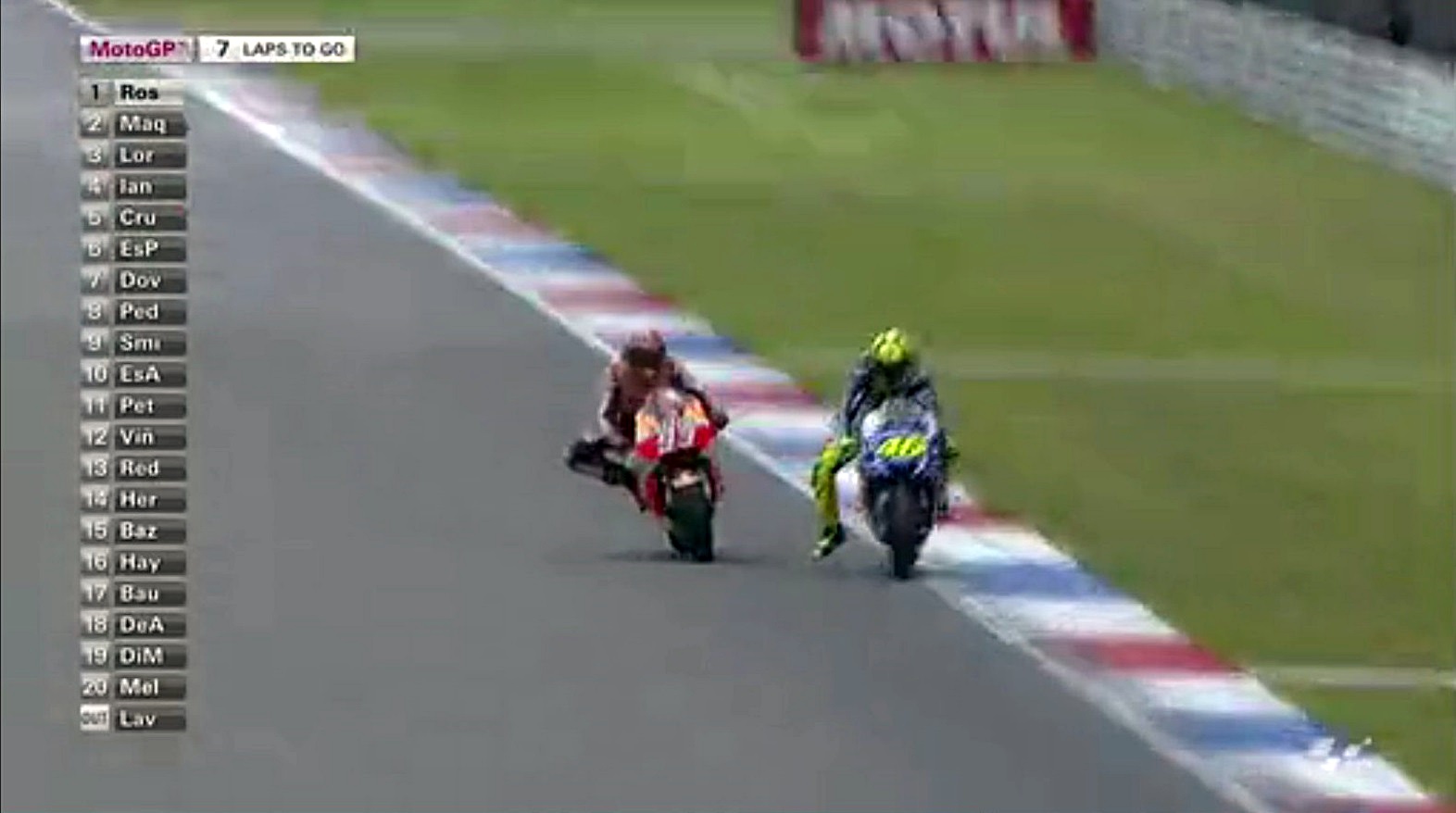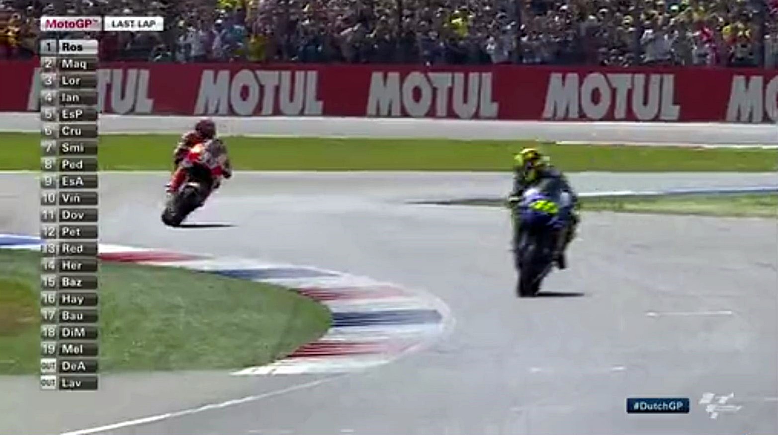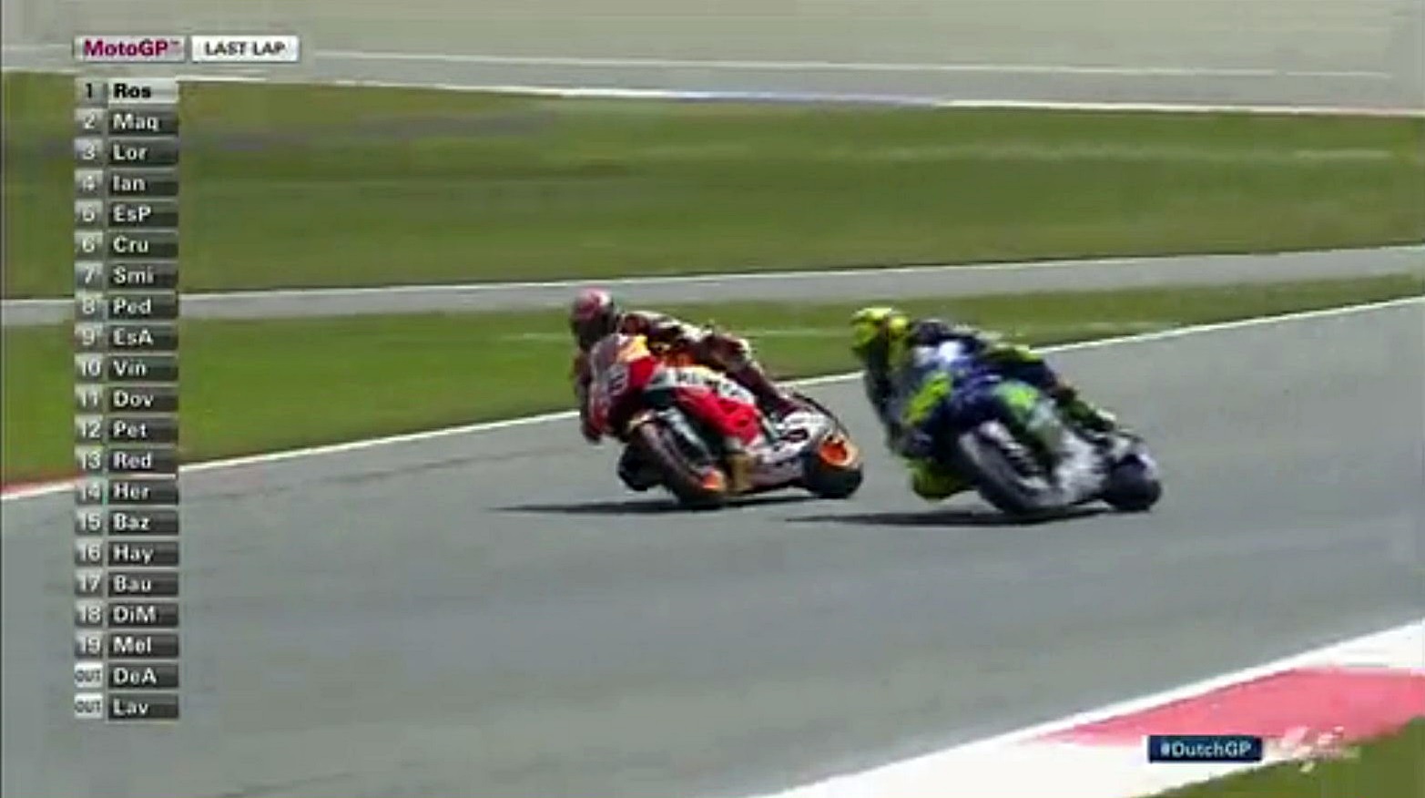 ほんの少しですがロッシが先にコーナーに入っているんですよね。とはいえ結構かぶせてますので