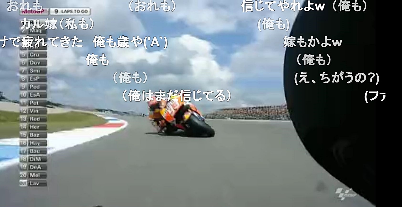 まぁすまん、おれもコケたんだと思ったよ。でもクラッチローはコケたら早くなったりするしなぁ・・・、しかしコメントの一体感に思わずほんわかしてしまったよ。ドルナさんもニコ動みたいなシステムにしたら面白いと思うんだけどなぁ~。