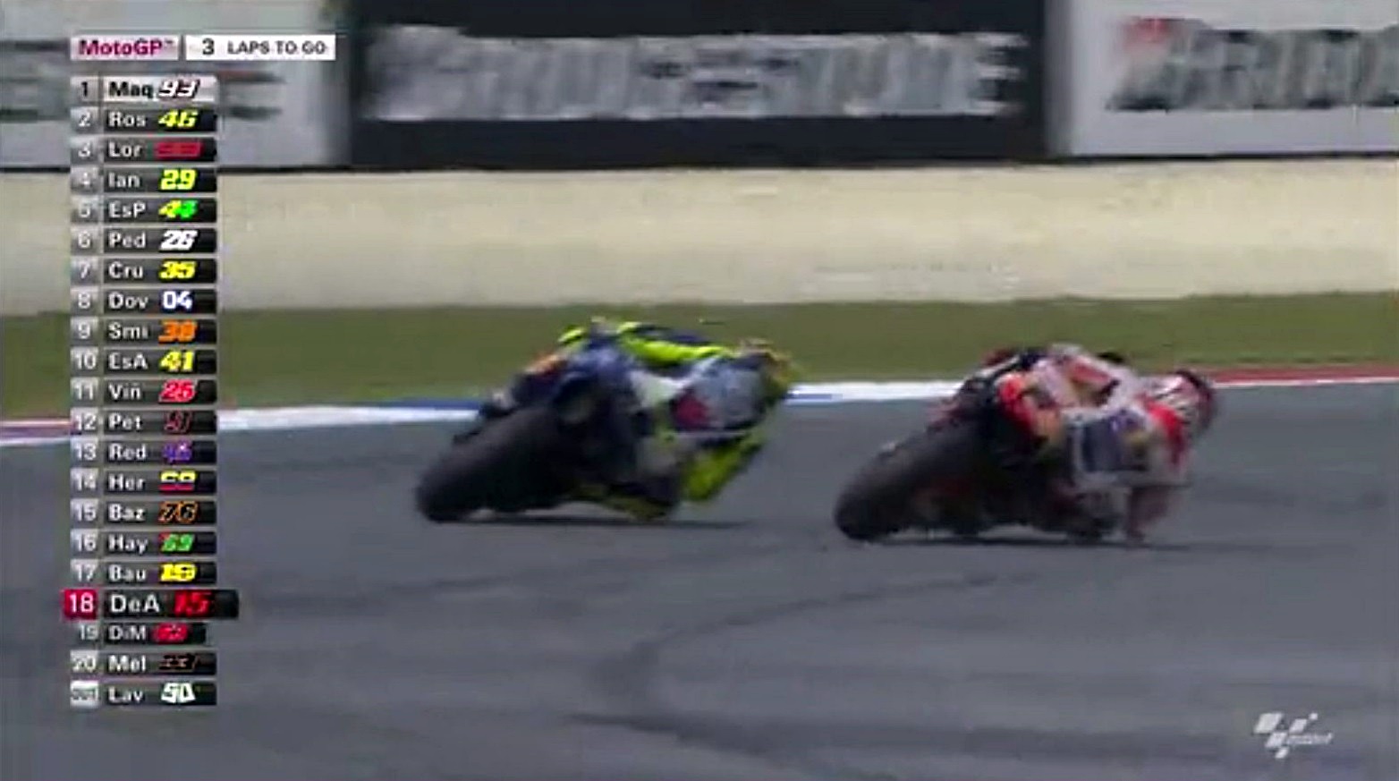 モトGP:ロッシ VS マルケス、最終コーナー肉弾戦でロッシ勝利!