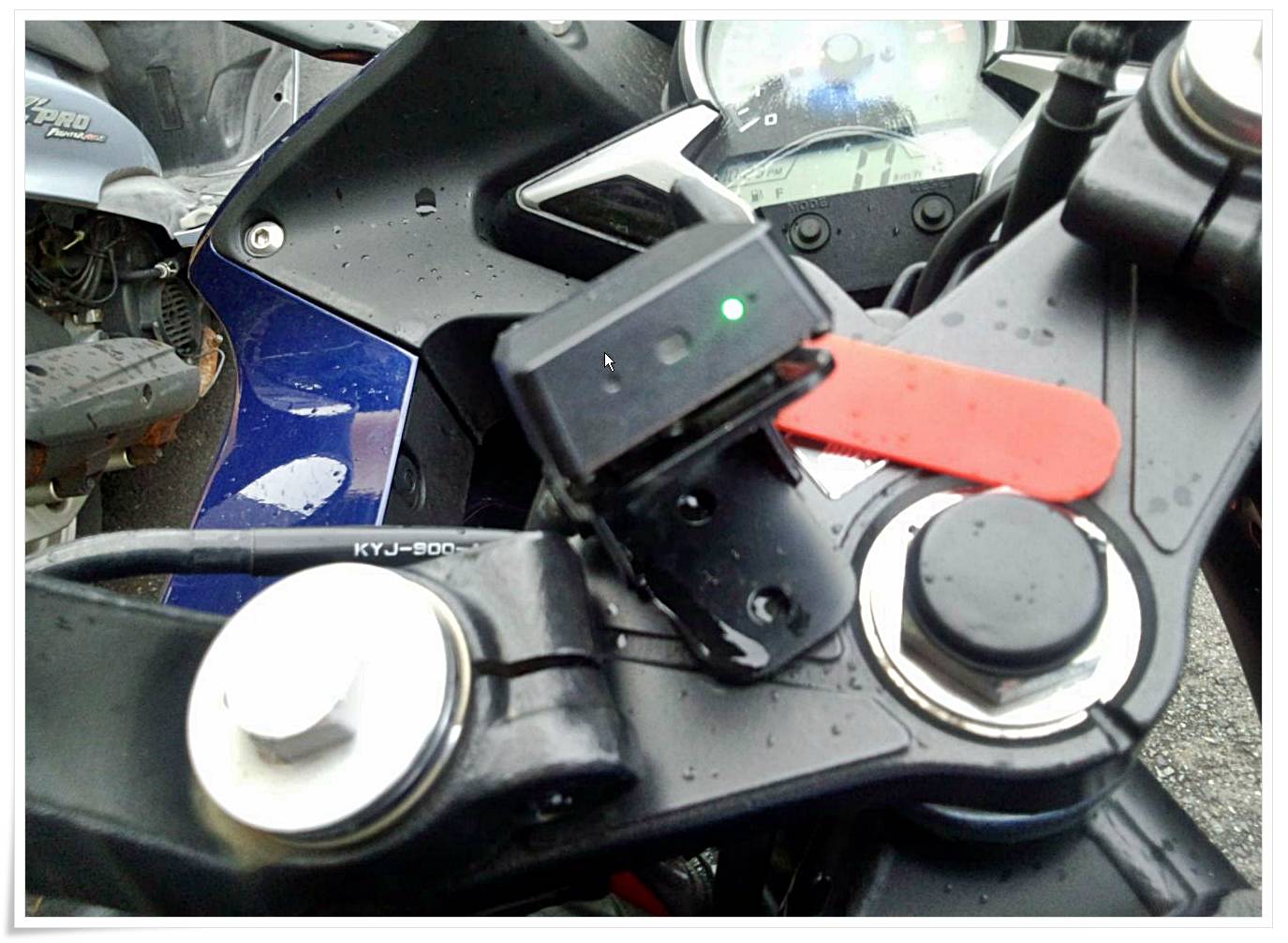 本当はハンドルにステー噛ませてつける予定だったんですが、ハンドルを切るとスクリーンと干渉する為、キー横に両面テープでマウントすることに。