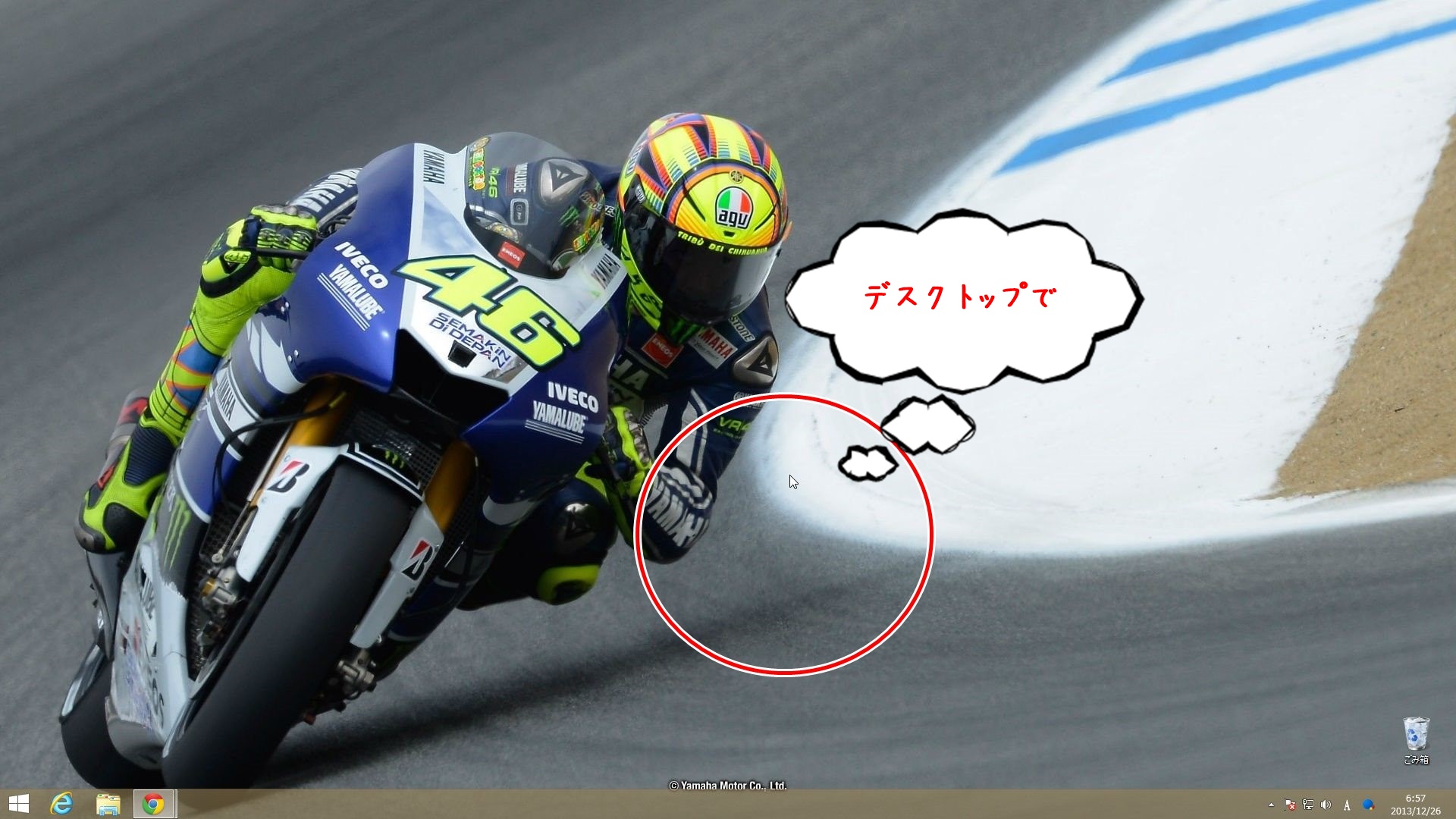デスクトップの何も無いところで、左クリックをダブルクリックすると