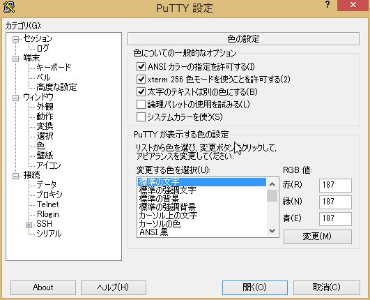 ただPuttyさんはデフォルトの文字色が、すげー見づらいのが困りもの。