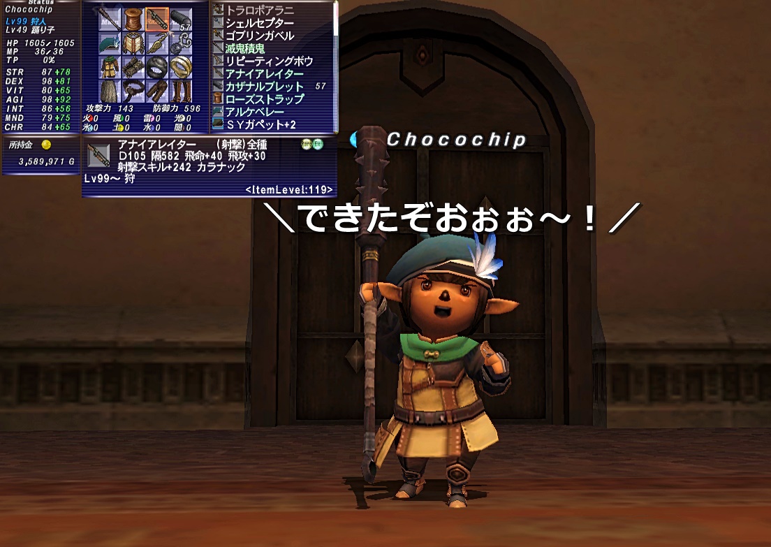 とりあえずAFとレリックのIL109まではつけて、AAとかメナスとかに狩人で参加する機会を狙うかな~。