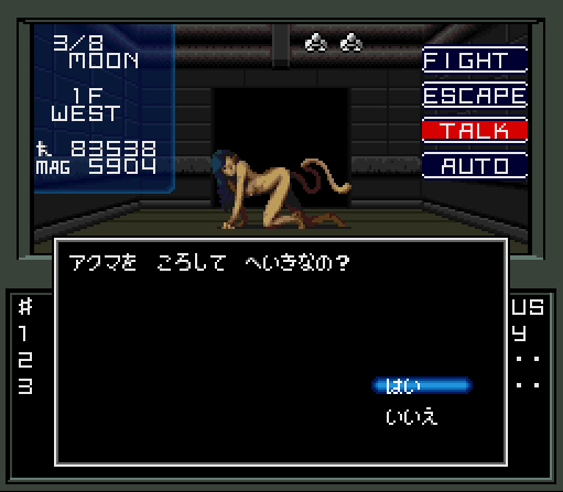 若いコにはペルソナのイメージがあるんでしょうけど、個人的には女神転生はペルソナではなくメガテンなんですよ。特に初めてクリアしたメガテンだったので今でもすげー記憶に残ってます。一応FC版のメガテンからやってますが、当時小学生だったのでクリアできなかったんだよなぁ、炎の回廊あたりで挫けた。あれはヒドかった。