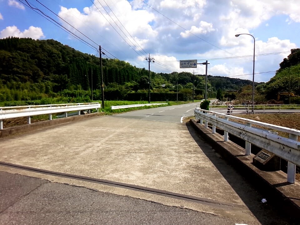 さて、ここでラーメン八平に向かうまでの最大の罠を回避します。山内ダムの看板を目印に右折して下さい。