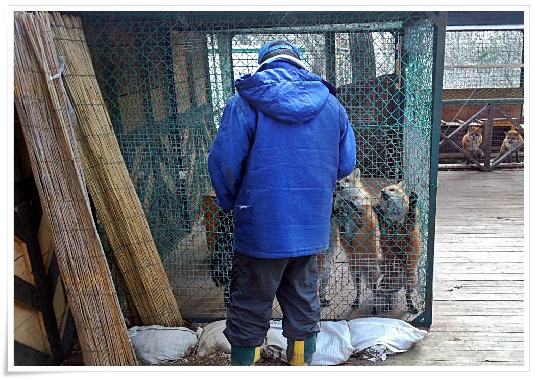 中の受付に入って、入園料700円とキツネの餌を購入。