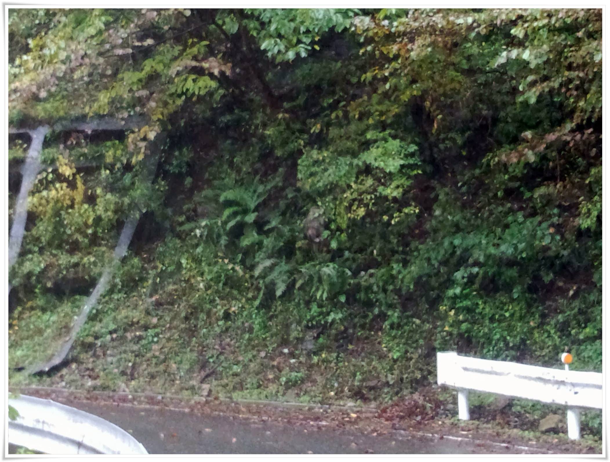 ドライブ中に前の方でなんか横切ったと思ったら、お猿さんに出くわしました!