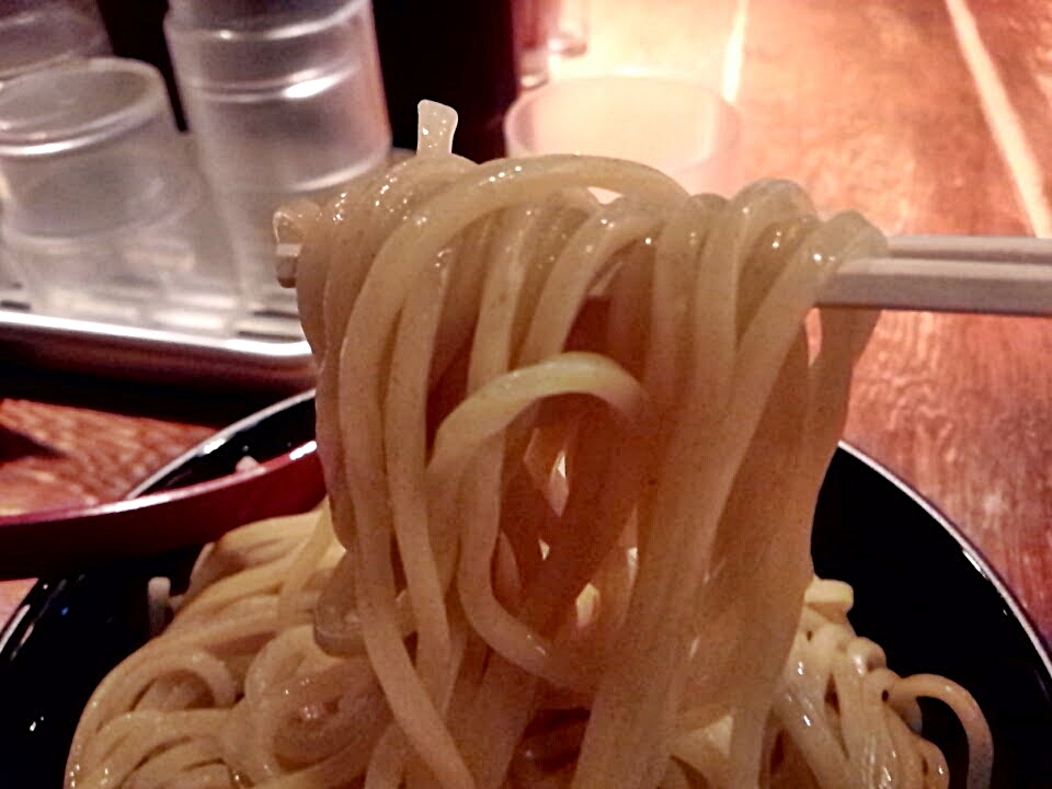 つけ汁さんは六厘舎よりちょっと濃い目な色をしてるなぁ。でもしょっぱいわけじゃなくてこれが不思議とちょうどいいんですよね。ドロドロでもあるし、ザラザラ感がある感じ。