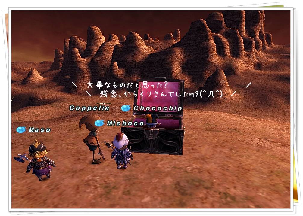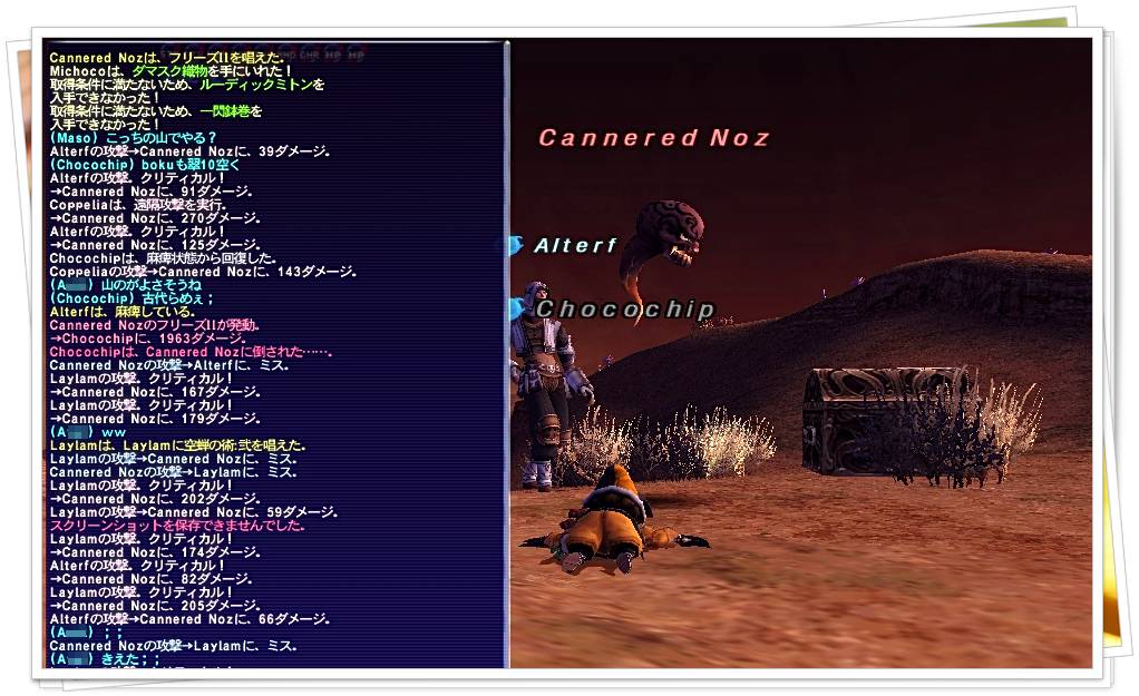 今度、クロリスまでのトリガーNMとの戦闘のダイジェスト版でも纏めようかしらね。