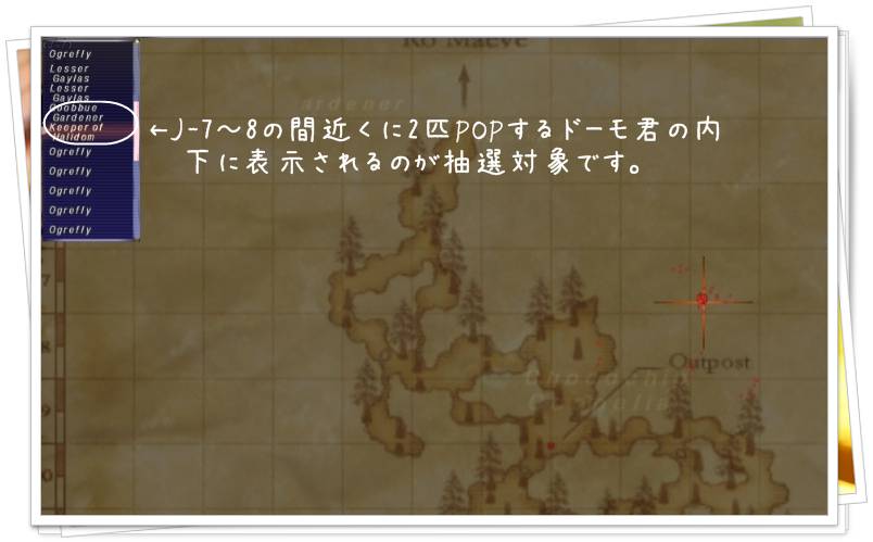 ちなみにJ-7と8の境目にいる2匹の内、下に表示されるのが抽選対象です。