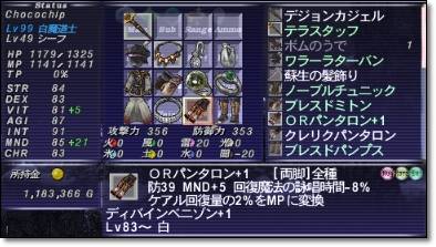 白ソロはHPと持久力、それとWSを高回転で撃ちたいので、この3つをチョイス。