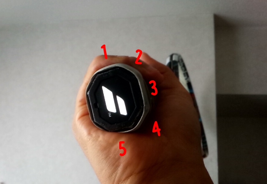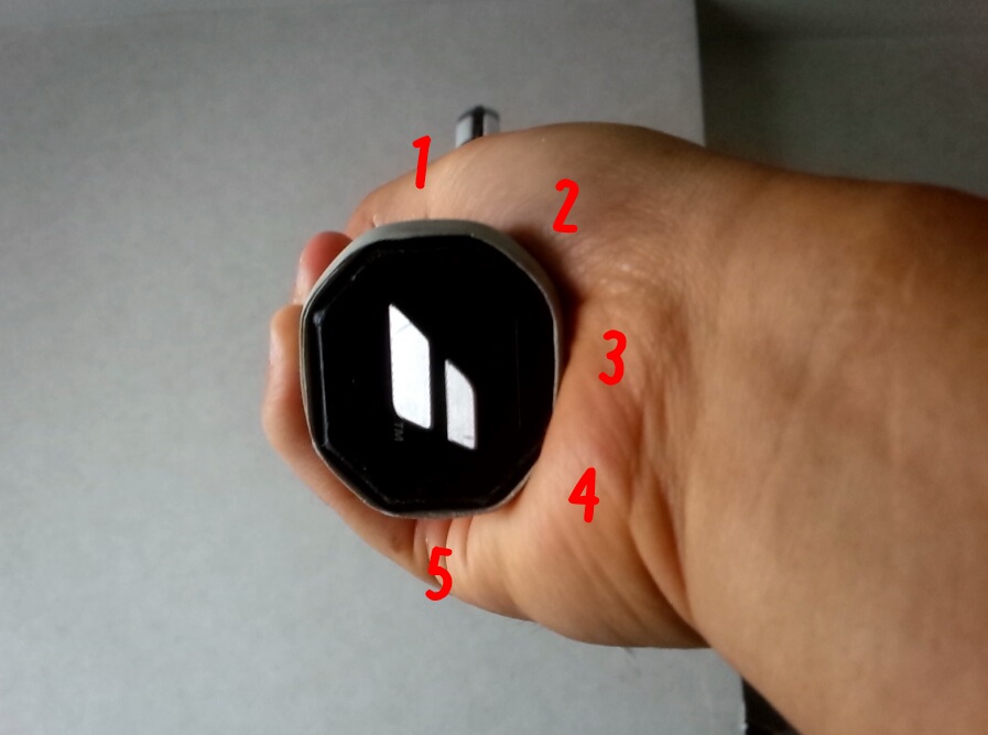 こんな握り方してました。グリップの3番を手のひらで押す感覚で打てて、軟式テニス出身者なのでこれが一番自然な握り方だったんですよね。早くて強いボールを打つのは問題ないんですが、どうしてもスピンが打てなかった。というよりはスピンかけてるつもりが出来てなかったのが正解でした。