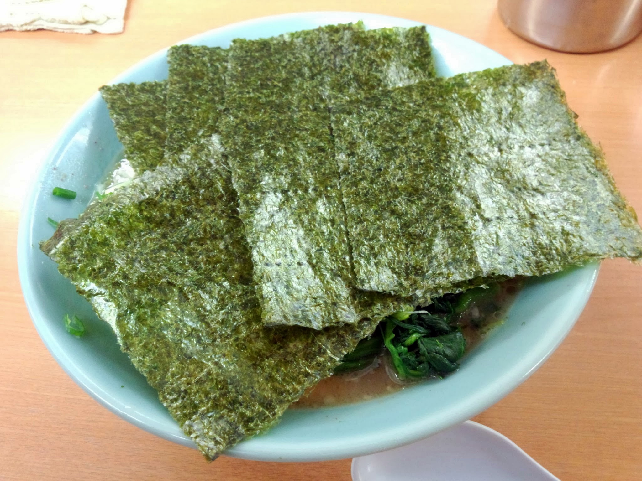 それと海苔がいっぱいなので、麺を海苔で包んで食べるのもウマイ!家系ならではな食べ方かな。こちらのお店ではライスがサービスでついてくるので、海苔をスープに浸して、ご飯と一緒に食べるのもたまらんのですよ~。ああ、書いてて食べたくなってきた(笑)