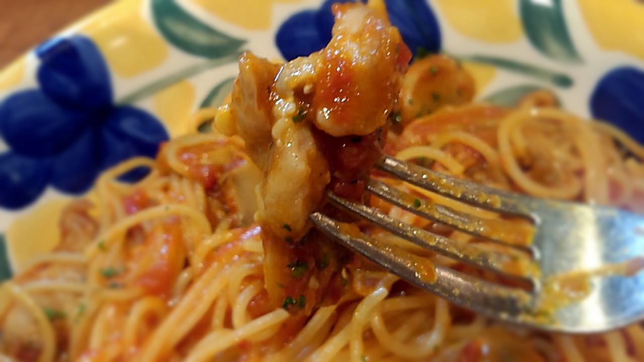 こちらのパスタは生パスタ。以前よりも細くなったのは気のせいかな?