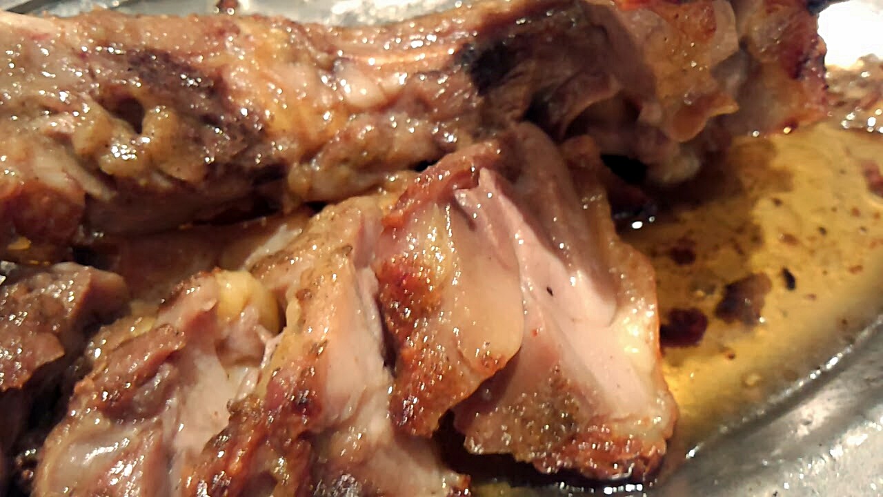 想像より大きめなサイズにちょっととまどいましたが、ここはやはり骨を持って齧りつくのがマナーでしょうか。上品に食ってなんかられねぇぜ!