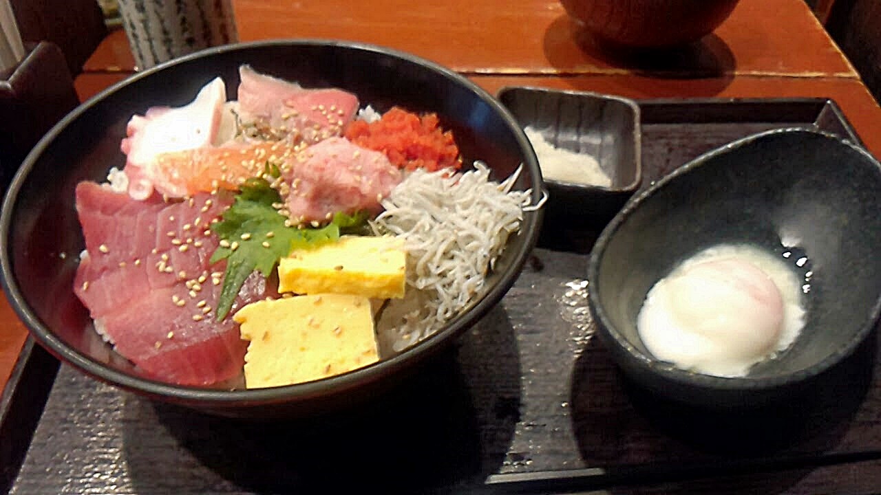 マグロ、ネギトロ、タコ、サーモンetcetcとなかなか具沢山。正直魚の質がとても良いとは言えませんでしたが、この値段とランチであれば十分ですよね。温泉卵にちょっと多めに醤油を入れて丼にかけてかっこめば至福の一時。できれば酢飯だったらいいんだけどなぁ~、酢飯だとお替わり自由とはいかないからしょうがない。