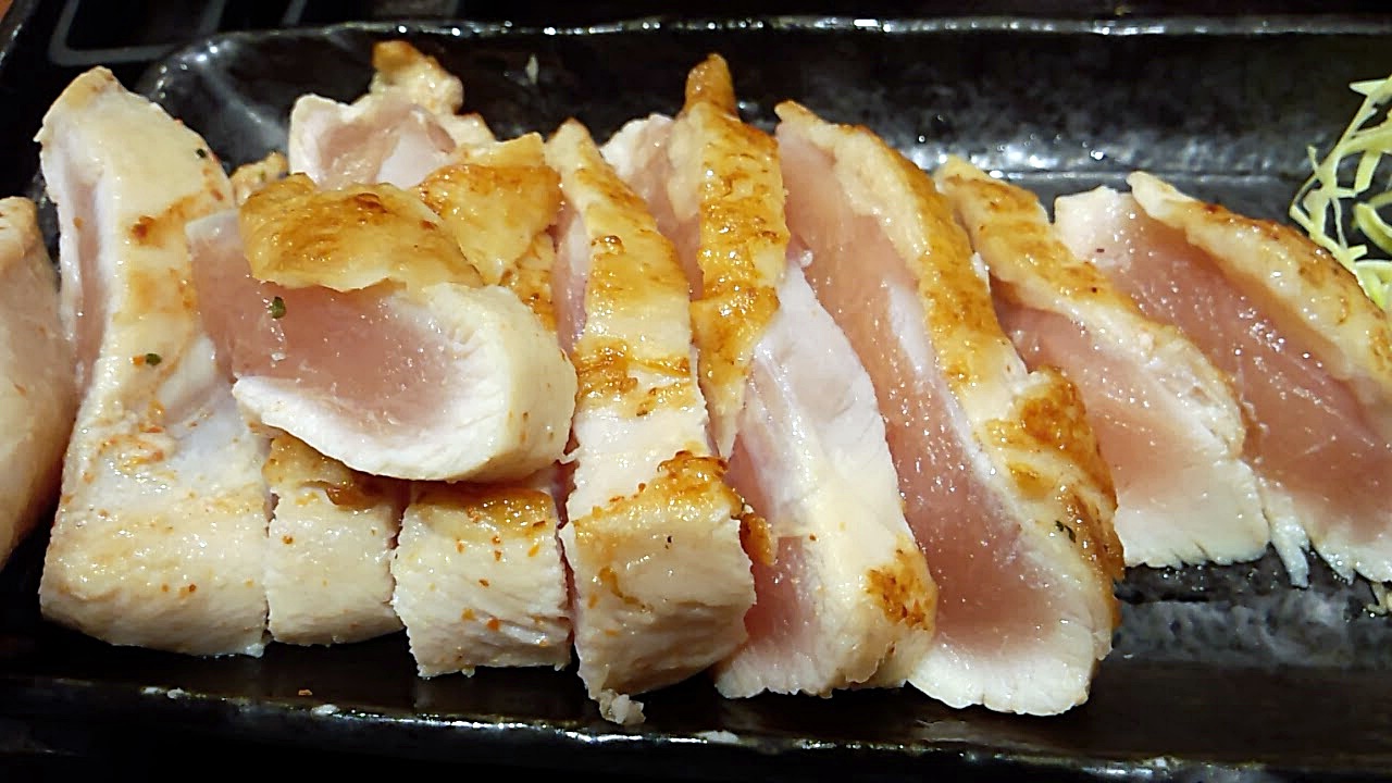 味付けもも肉をレアで焼きあげて出してくれます。鶏肉は皮の焼けた匂いがたまらない。