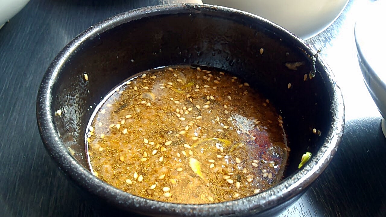 蕎麦の上に味付けした牛肉、その上には刻んだネギと海苔。それを受け止める蕎麦梅雨は暖かく当然ラー油が入るまさに正統派港屋インスパイアスタイル。