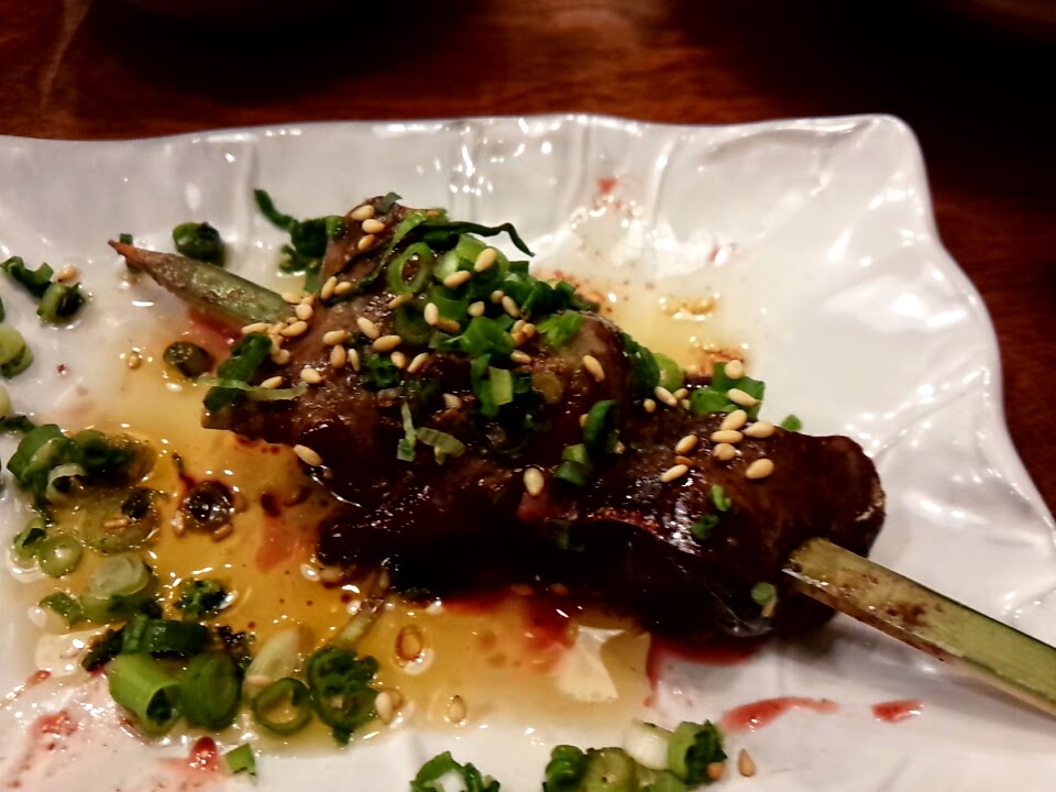 おおぶりで脂がのったプリっとジューシーな味わいとメニューにあったのですが、ん~・・・正直そこまでの物では無いかな。ハツは淡白な味わいなので、ごま油と塩で食べるのは良いですな。