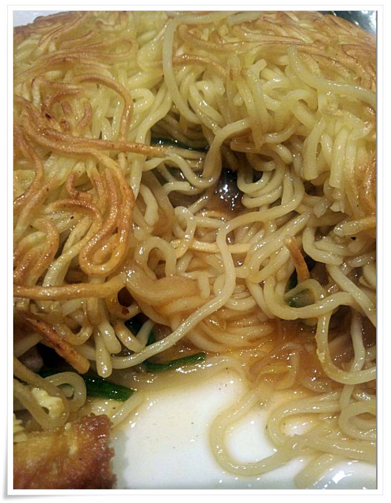 餡を包んでいる中の麺は柔らかく、外側のカリカリとの食感の差が楽しい料理ですね。