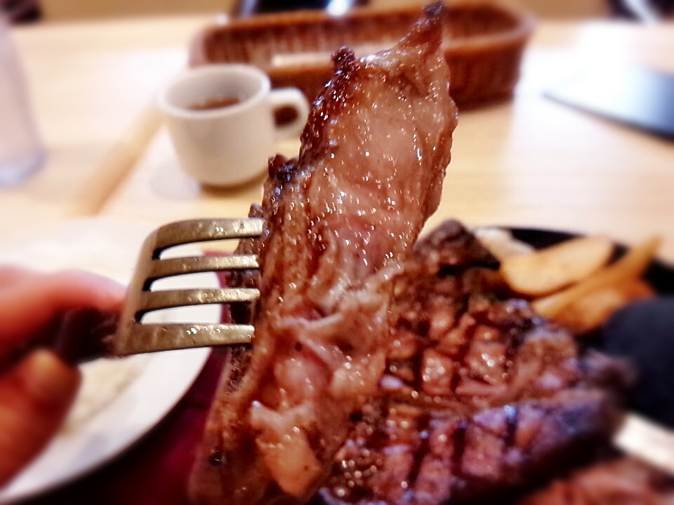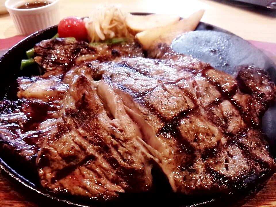 このダブルビーフステーキ、お肉が360gもあるだけあり結構な厚さ。そして肉も柔らかい!