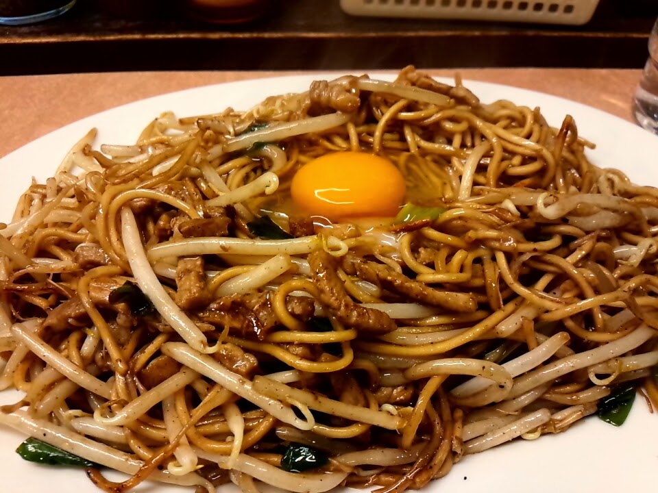 ここの焼きそばは生卵を落とすのがオススメらしいので、当然生卵付きでお願いしました。