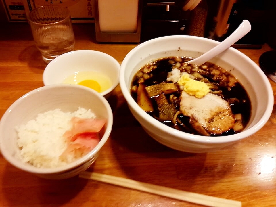 付け合せのご飯は小ライス程度ですが、ここに残った生卵に卓上のゴマ、そこにしょっぱいラーメンのスープを足せば立派なTKGの完成です。これいうの楽しいですね。ただここにガリが載っていて、やたらと生姜オシなのは何でなんだろう。まぁ寒いときには暖まるかもしないけど、辛いんだよなぁ。