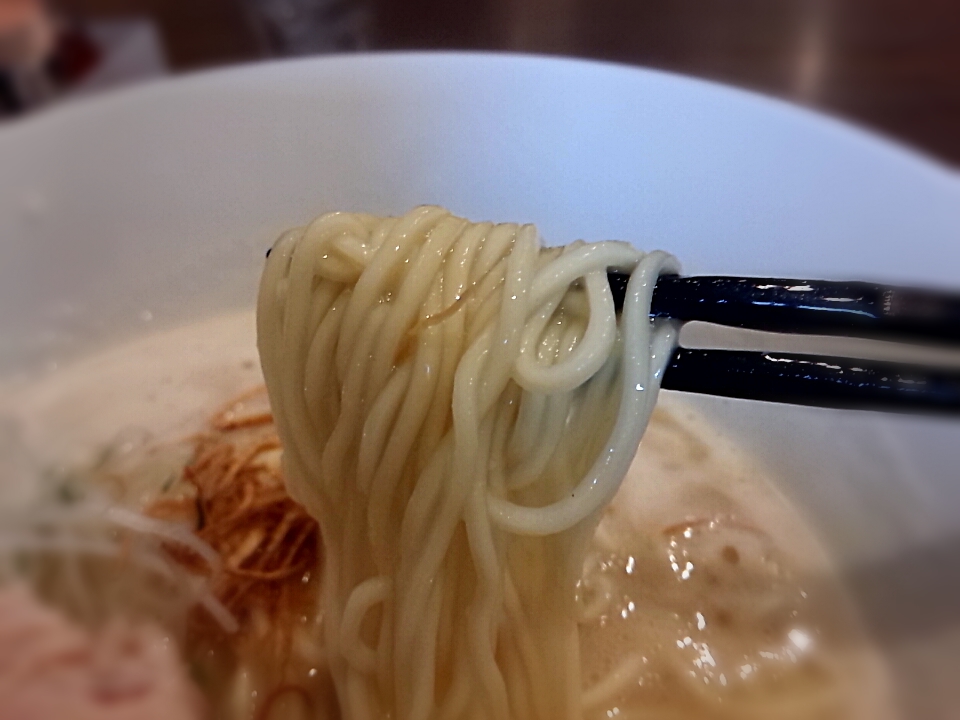 スープの表面は泡だっていてまるでカフェラテのよう。さっそくスープから頂くと鶏の旨味とコクがドーンっときますね。それに臭みやクドさを感じません。鶏白湯ってコッテリしてちょっとクドいのが難点だと思うんですが、ここはそれが無くて嬉しい。このスープはイイですね!