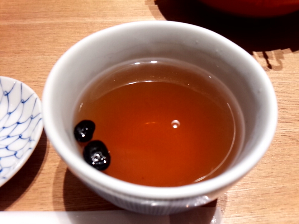 まずは注文前に黒豆茶で一息。寒かったから暖かいお茶が嬉しい、それに普通のお茶じゃなく黒豆茶ってのが良いですな。お金を取らない所にちょっとした違いがあると嬉しいものです。