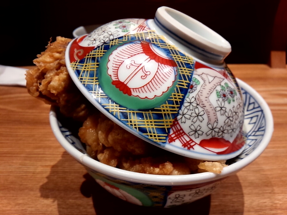 こいつを崩して黄身が流れます。これは良い半熟卵。濃い目のタレと黄身とご飯が絡むを見てニンマリしてします。後は一心不乱に天ぷらとご飯をかきこめば幸せってなもんです。食べている途中であまり重さを感じないのは、天ぷらとご飯の間にゆずの皮と刻んだガリが敷いてあるからかな。特にゆずの風味はタレに良く合うしこれはひそかに名脇役といえるのでは?
