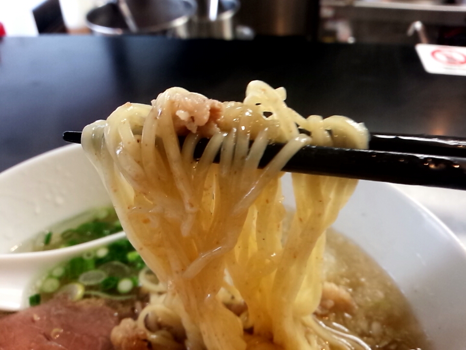 スープは塩気が尖った感じがあるわけではなく、牛脂の甘みが全面に押し出されたマイルドな味わい。香りも旨味も甘みも牛、牛、牛!ここまで牛を感じるラーメンってのもすごいですね。さすが牛骨ラーメンで有名になったお店なだけはあるなと。