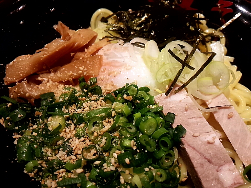 ノーマルではチャーシュー、シナチク、海苔、刻みネギ、これにスペシャルトッピングでねぎゴマ+半熟たまごが追加です。豪華!ただトータル900円はなかなか痛い。半熟たまごのみトッピング追加でもよかったかも。100円ですし。