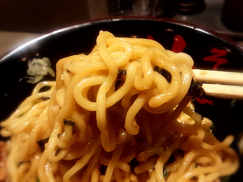 麺は太くもなく補足もない中間どころ。だがそれが良い。トッピングのチャーシューも細く切って食感を合わせてるところにも食感が合わせてあり、お店側がバランスを重視しているんだろうなと汲み取れますね。こういう所ってすごい大切だと思うんですが、意外とチャーシュー細切りの油そばって無いんですよね。麺を主食にお肉を齧るってのも楽しいけどな!