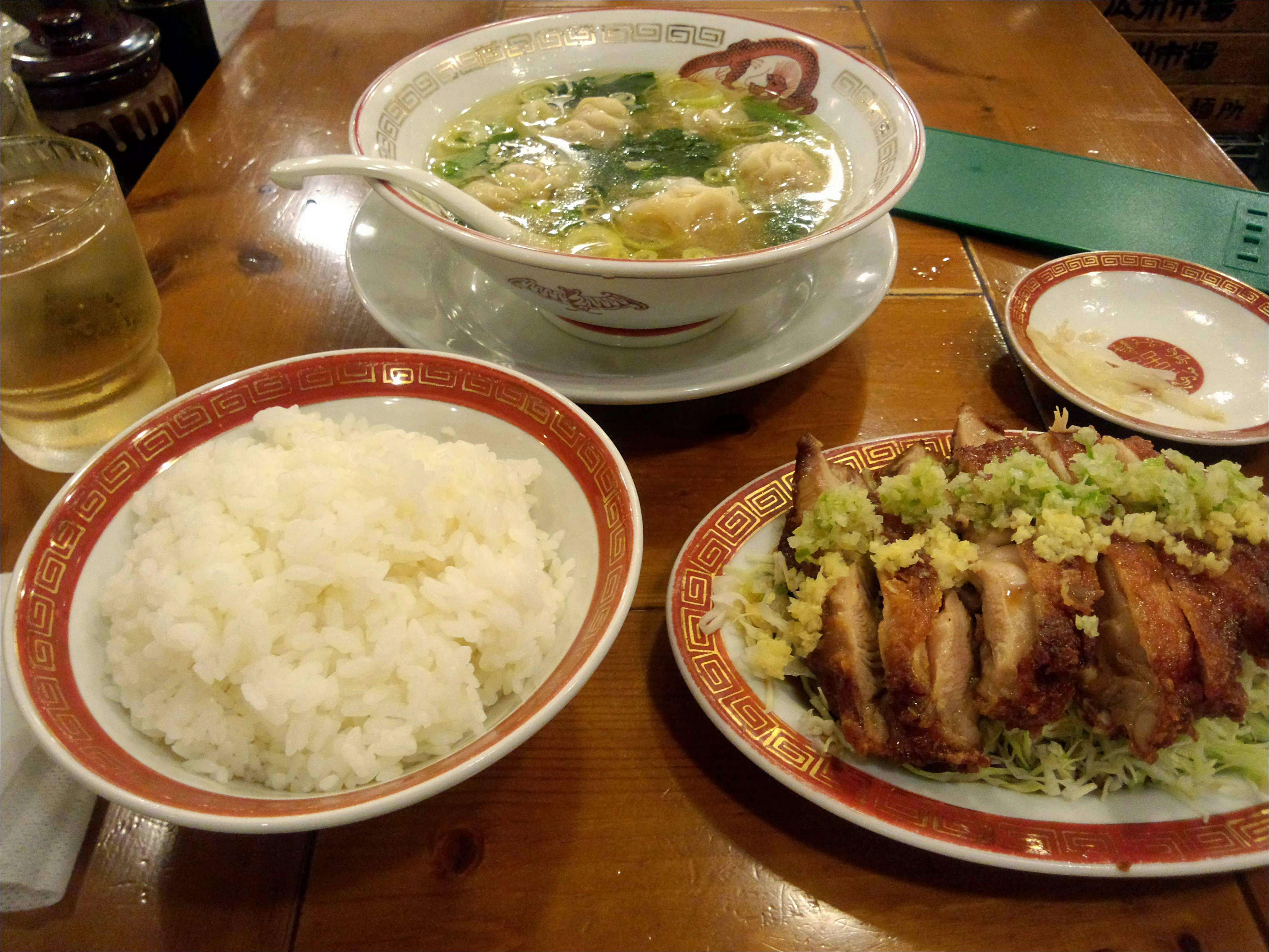 盛りが多めのご飯、とワンタンスープがついてきます。