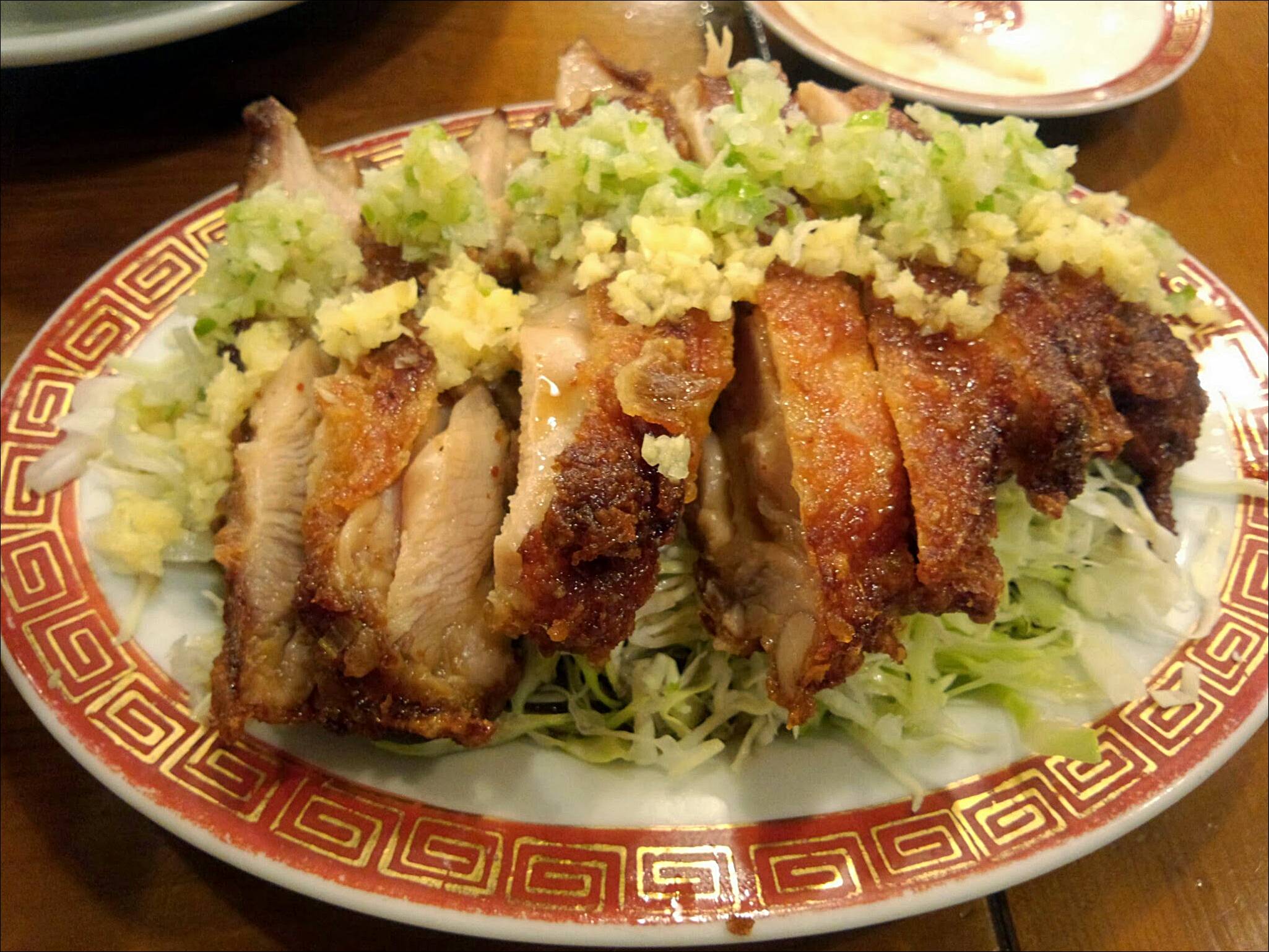 中華料理屋さんの油淋鶏は、鶏が素揚げされてるだけで鶏がパッサパサになって残念な事が多い気がするんですけど、ここの油淋鶏は外がカリカリ、中がジューシーでウマス!