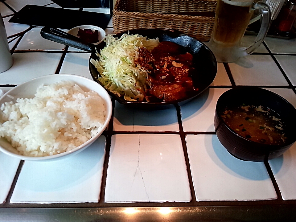ソースもコクとデミグラのようなビターな苦味、それにニンニクが効いていてご飯が進みますねぇ~、ほんと白飯が進む。たっぷりキャベツも口直しに役たちます。