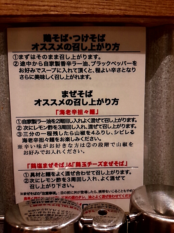 着丼までの空いた時間に店内を見渡すと、ラーメンの食べ方についての説明書きを発見。