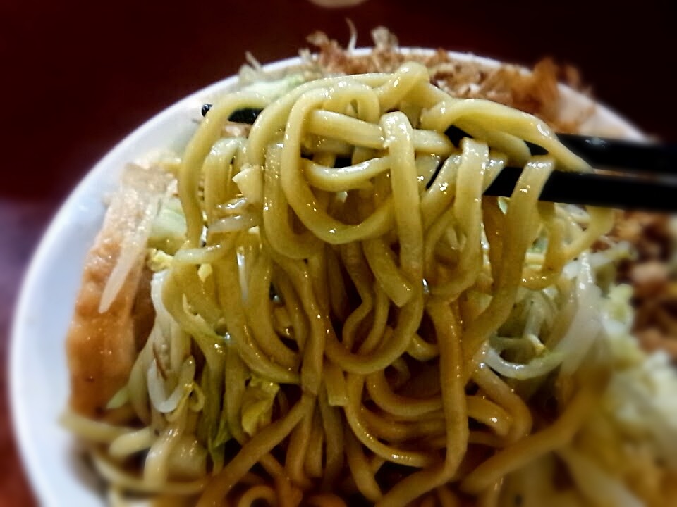 麺は平打、二郎系の麺って美味しいんですよね。